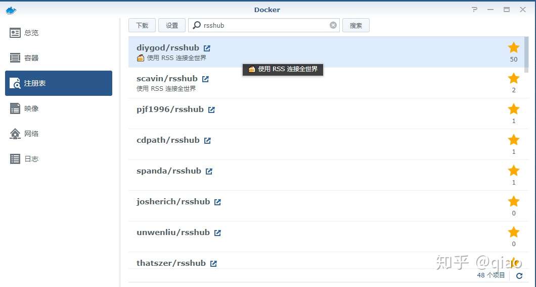 然后直接双击下载,再去映像中启动,注意设置端口,rsshub容器使用的端口是1200,记得在高级设置-端口设置中把本地端口从自动改成你要用的端口号;