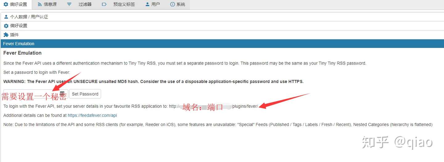 我用的是reader,找到Fever,输入上面的地址,用户名,设置的秘密登录即可