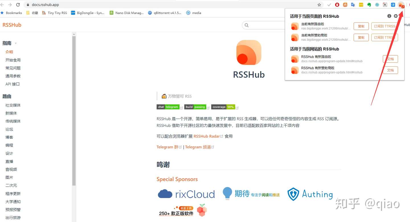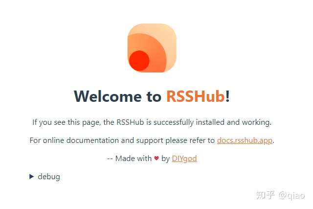在浏览器输入 nas域名:端口号 就能看到RSSHub服务运行的页面了。
