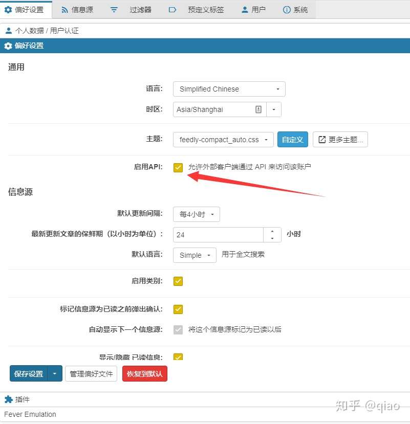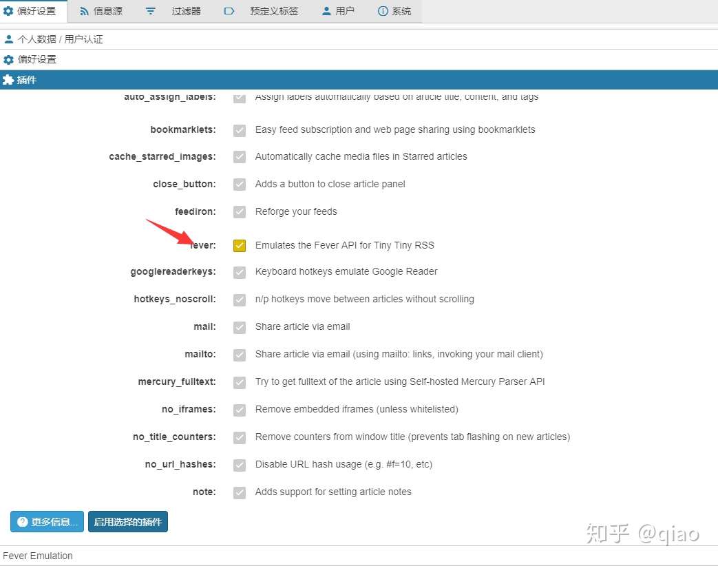 - ENABLE_PLUGINS=auth_internal,fever # 默认开启