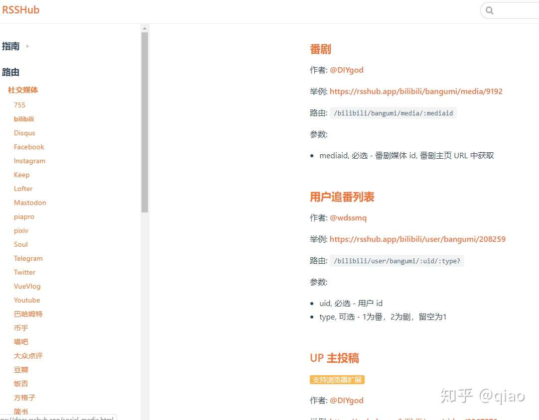 RSSHub的使用很简单,抓取规则默认都提供好了,只需要按照路由说明修改地址即可。