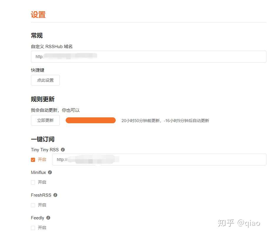 可以将你前面搭建的rsshub地址作为自定义域名,这样你搭建的rsshub就会按照规则去爬取网站信息,当然你需要有公网ip,或者frp,不管什么方式怎样你的nas能外网访问才可以,这点很重要。